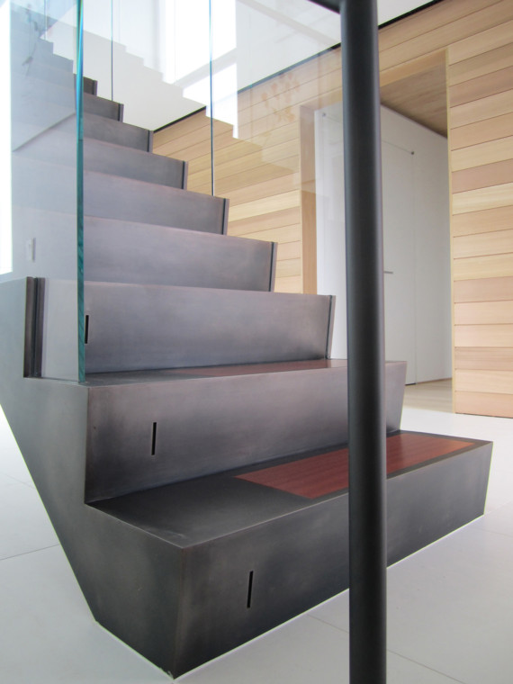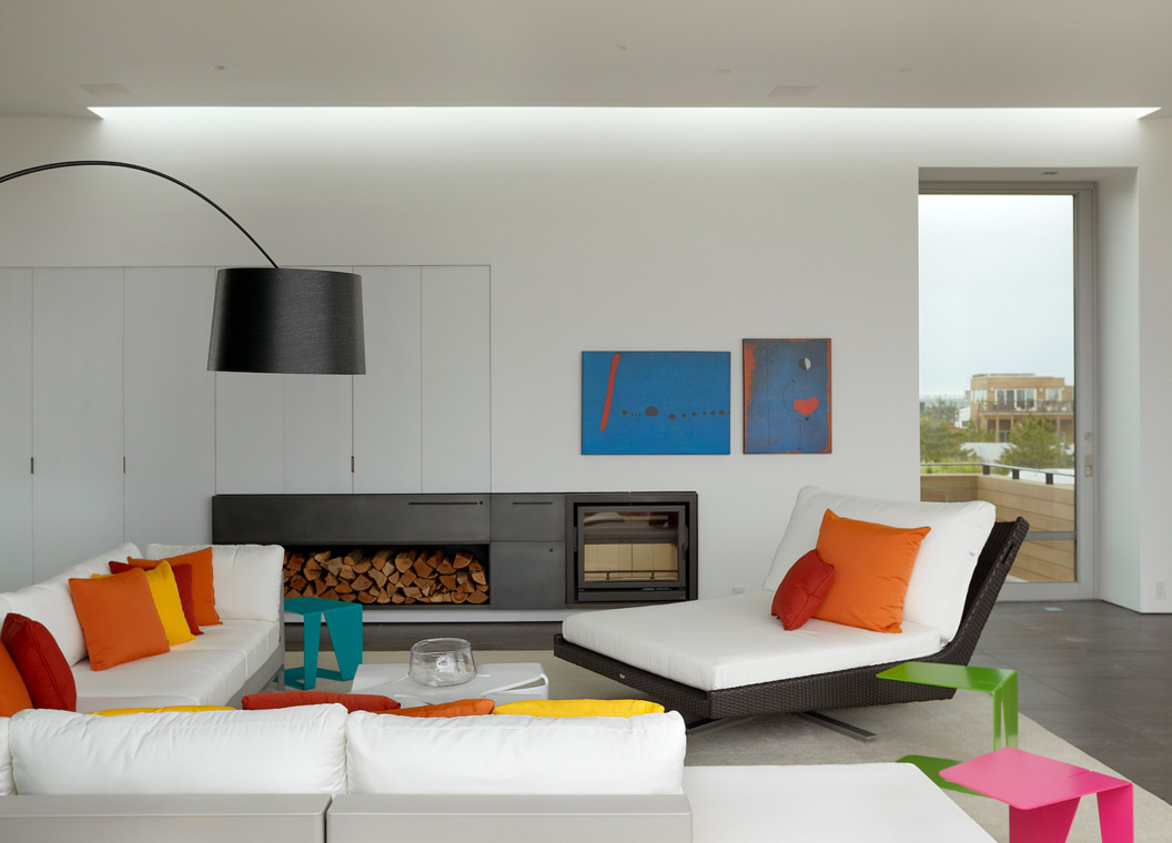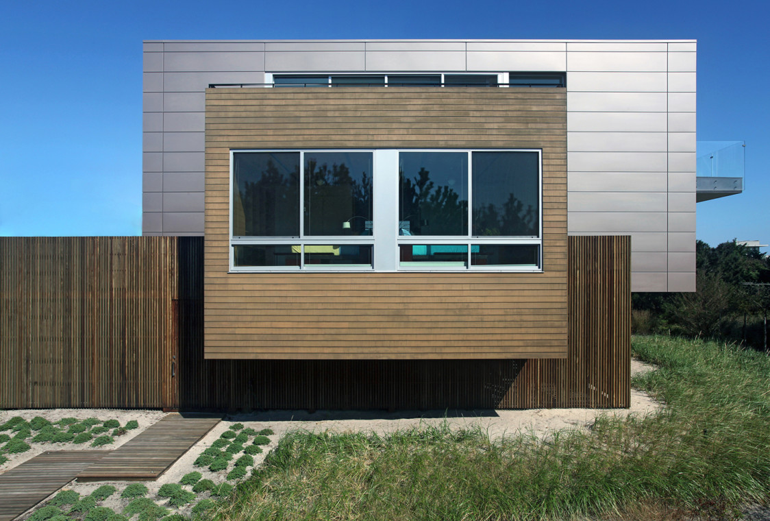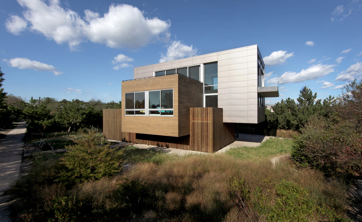 Fire Island House Free-standing, open plan, summer house, 2 stories high, 2,300 square feet with 5 bedrooms and 3 bathrooms. Due to its proximity to the ocean, the house was designed to be 11 feet above ground to meet FEMA requirements.