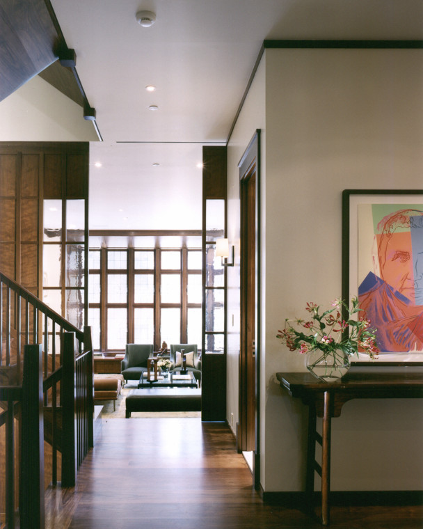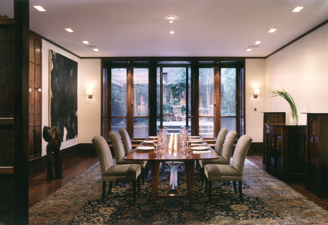 Lenox Hill Townhouse Brownstone gut-renovation, 4 stories high with basement, 6,200 square feet with 5 bedrooms and 8 bathrooms. Per the client's request, this house was inspired by the European Arts & Crafts Movement with extensive walnut, custom millwork.