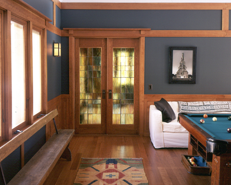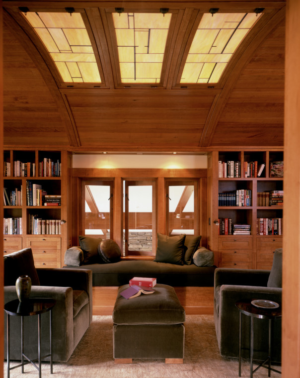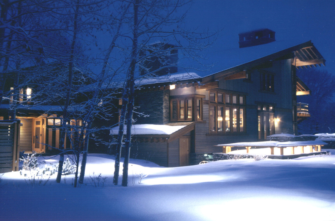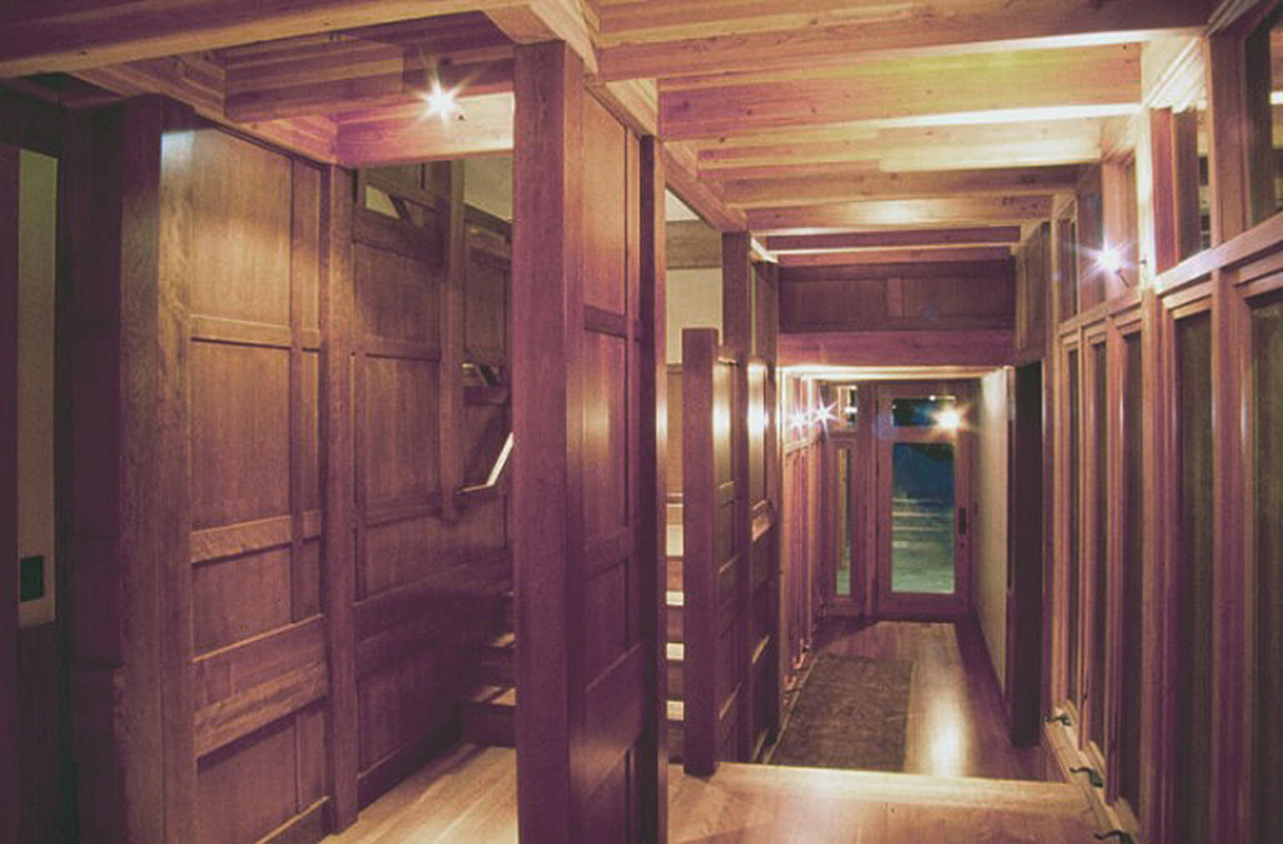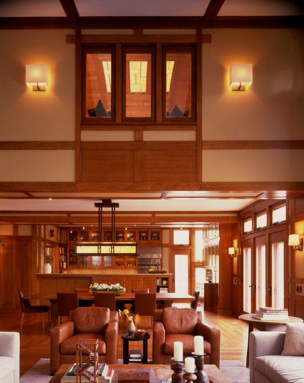 Sun Valley House This free-standing house is linked to a guest house with a glass and wood gallery, 2 stories high, 10,000 square feet with 5 bedrooms and 7 bathrooms. Per the client's request, this house was inspired by the architects of the Arts and Crafts Movement, Greene & Greene.